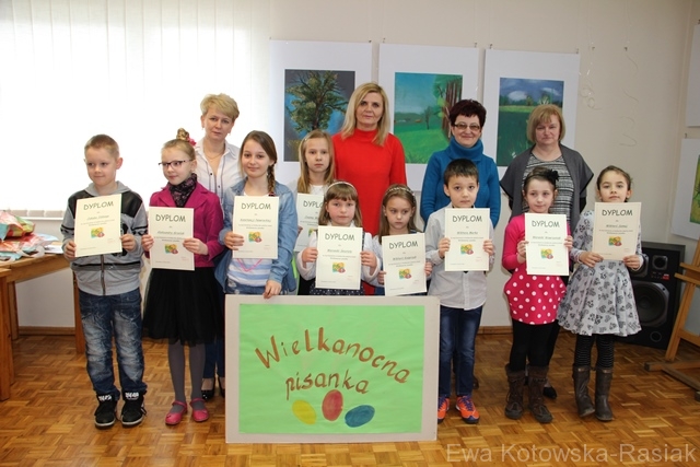 Podsumowanie konkursu plastycznego pt. „Wielkanocna pisanka” i wręczenie nagród odbyło się w środę, 23 marca, w Gminnej Bibliotece Publicznej w Sieroszewicach. Zaproszonych gości powitała dyrektor książnicy Maria Marciniak, która jest pomysłodawcą i organizatorem konkursu. Spotkanie zaszczyciła swoją obecnością sekretarz gminy Sieroszewice Mirosława Busza. Do udziału w konkursie na wykonanie pisanki zaproszono przedszkolaków i uczniów szkół podstawowych. Była to już jedenasta edycja konkursu cieszącego się bardzo dużym zainteresowaniem ze strony dzieci. Na konkurs wpłynęły 202 pisanki. Łącznie we wszystkich jedenastu konkursach wykonano 2152 prace, a nagrodzono 352. Przy ocenie prac jurorzy brali pod uwagę: zgodność z regulaminem, wyraz artystyczny, estetykę, pomysłowość i samodzielność wykonania pracy. Techniki wykonania pisanek były bardzo różne. – Większość prac była przestrzenna sporządzona na wydmuszkach lub jajkach styropianowych. Pisanki były przyozdabiane kolorowym papierem, bibułą, wełną, wstążką, guzikami, cekinami, a także malowane farbami i pastelami. Nowością były pisanki z elementami słomy prasowanej i bąbelkowej folii. Prace płaskie wykonano z użyciem farb, kredek, papieru kolorowego, materiału, bibuły – powiedziała dyrektor książnicy. Komisja w składzie: Maria Marciniak (dyrektor Gminnej Biblioteki Publicznej w Sieroszewicach), Janina Maciaszek (bibliotekarka) i Ewa Kotowska-Rasiak (redaktor strony internetowej biblioteki) wybrała 35 najładniejszych pisanek. Były one oceniane w trzech kategoriach wiekowych.