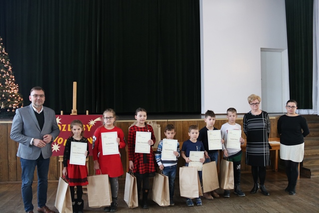 Laureatom dyplomy i nagrody wręczył wójt Anatol Piaskowski, który na zakończenie spotkania dziękował dyrektor biblioteki za zorganizowanie konkursu, laureatom gratulował sukcesów plastycznych i złożył życzenia świąteczne.