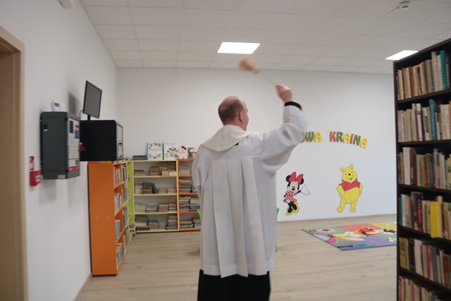 Po odmówieniu modlitwy i poświęceniu obiektu przez kapłanów dyrektor biblioteki podziękowała osobom zaangażowanym w budowę. – Roboty budowlane prowadzone były od 9 grudnia 2017 roku do 9 grudnia 2021 roku, czyli dokładnie cztery lata. Budowa składała się z sześciu etapów. Pierwszy i drugi etap budowała firma Cebud z Ostrowa Wielkopolskiego, trzeci i czwarty Przedsiębiorstwo Budownictwa Ogólnego, etap piąty Firma budowlana pana Roberta Olejnika i ostatni Firma pana Marka Chmielewskiego. Łączna wartość robót wyniosła 1.286.172,51 zł. A później szanowni Państwo jeszcze tylko ogromna papierologia, przenoszenie księgozbioru i dziś mamy taki właśnie efekt. Mam nadzieję, że biblioteka w nowym miejscu będzie służyć wszystkim miłośnikom książek, a sąsiedztwo Szkoły Podstawowej będzie dodatkowym atutem w jej funkcjonowaniu. Dziękuję panu wójtowi Anatolowi Piaskowskiemu za to, że mogliśmy dokończyć tę inwestycję, panu wójtowi Czesławowi Berkowskiemu za rozpoczęcie tej inwestycji, radnym gminy Sieroszewice, pracownikom Urzędu Gminy, inspektorowi nadzoru panu Zbigniewowi Tomickiemu, panu Pawłowi Orleańskiemu, który przez dwa etapy pełnił rolę inwestora zastępczego, prezesom i właścicielom firm budowlanych, pani sołtys Bernadecie Białej za zaangażowanie, Radzie Sołeckiej oraz mieszkańcom Strzyżewa za uporządkowanie terenu obok budynku, panu Przemysławowi Wilgockiemu i jego ekipie za przewiezienie książek. Dziękuję wszystkim, którzy w jakikolwiek sposób przyczynili się do tego, aby ta inwestycja powstała – mówiła Maria Marciniak.