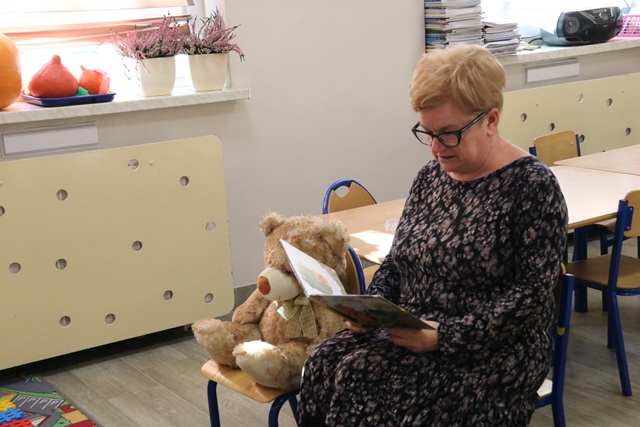 Z okazji Dnia Pluszowego Misia przedszkolaki i najmłodsi uczniowie Szkoły Podstawowej w Zamościu spotkali się z dyrektor biblioteki Marią Marciniak i misiem Librusiem. Dzieci wysłuchały bajki o Kubusiu Puchatku.