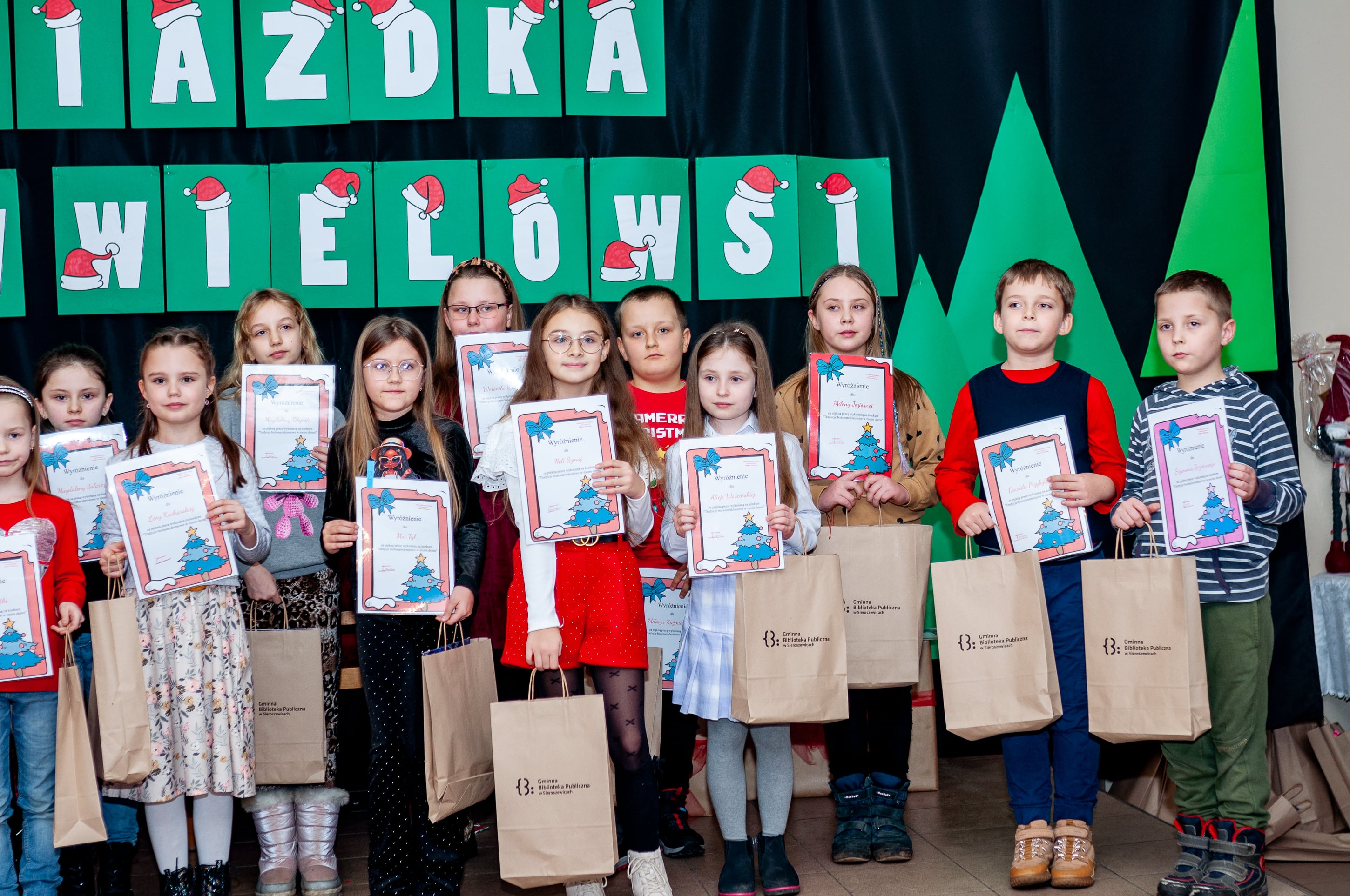 W niedzielę 8 grudnia rozstrzygnięto konkurs „Tradycje bożonarodzeniowe w moim domu” ogłoszony przez Gminną Bibliotekę Publiczną w Sieroszewicach – filię w Wielowsi. Wręczenia nagród i upominków dokonano podczas Gwiazdki w Wielowsi. Już po raz drugi to wydarzenie zgromadziło okolicznych mieszkańców którzy mogli cieszyć się wieloma atrakcjami. Prace konkursowe można podziwiać na wystawie w wielowiejskiej książnicy.