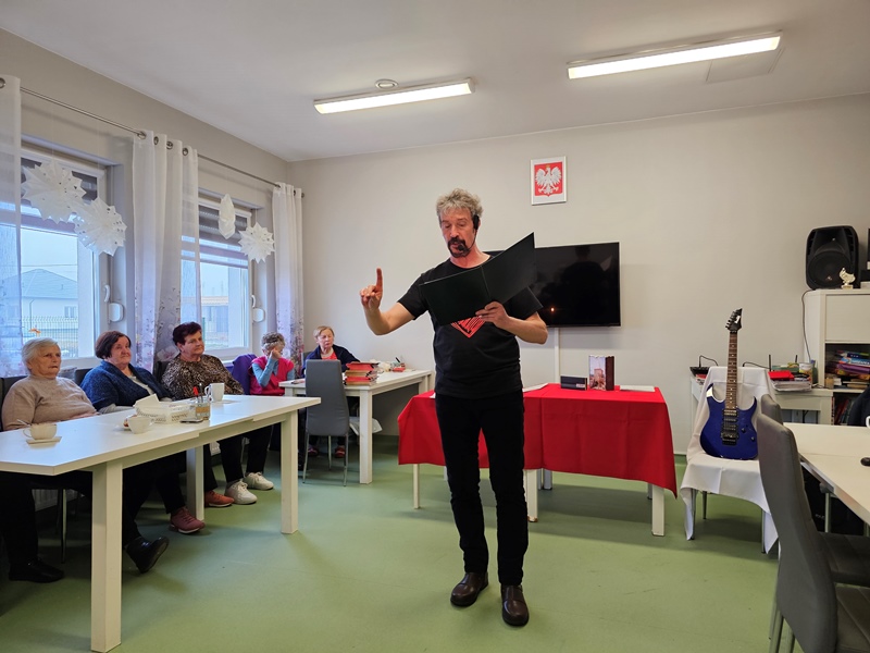 Poeta Piotr Pilarski prezentował swoje utwory seniorom z Dziennego Domu Senior + w Latowicach. Autor opowiadał o swojej twórczości.
