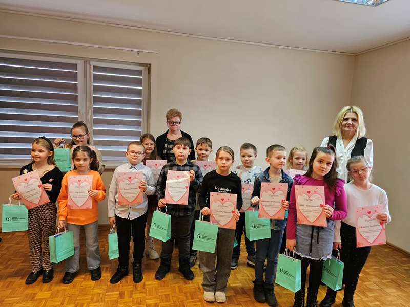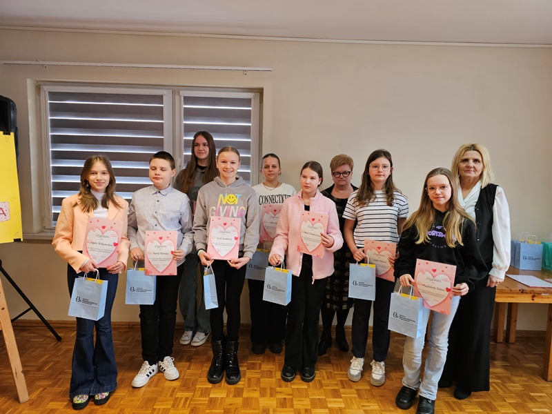 Laureatom gratulowały sekretarz Mirosława Busza i dyrektor biblioteki Maria Marciniak. Pani sekretarz podziękowała dzieciom za wykonanie pięknych kartek walentynkowych i zachęcała do udziału w kolejnych konkursach organizowanych przez bibliotekę. Wyróżnione walentynki będzie można oglądać na wystawie pokonkursowej w bibliotece w Sieroszewicach.