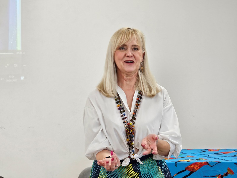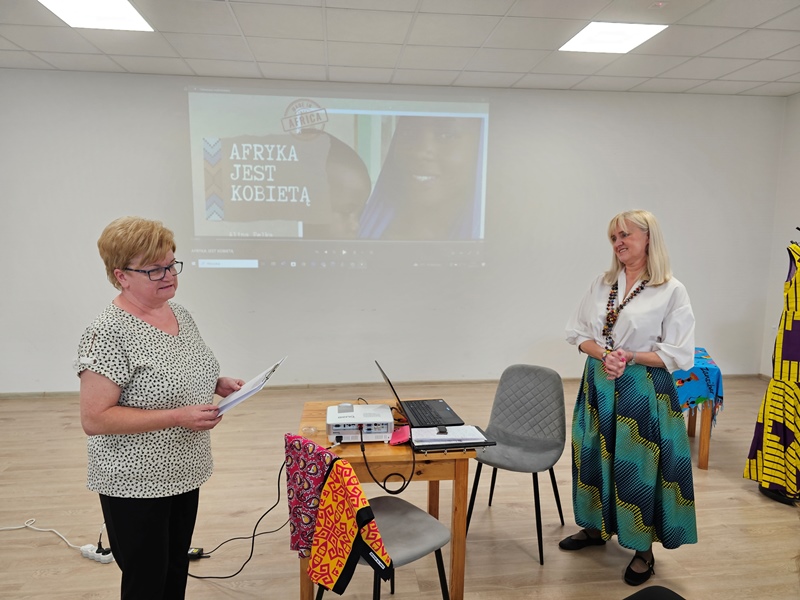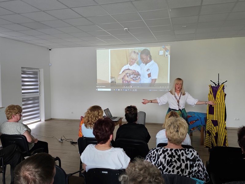 Alina Pelka jest prezesem fundacji zajmującej się pomocą afrykańskim kobietom z biedniejszych rejonów. Pani Alina opowiedziała o tym jak powstała fundacja, czym się zajmuje i jak wygląda pomoc niesiona przez nią i wolontariuszy osobom potrzebującym. Oglądając pokaz zdjęć i słuchając opowiadania gościa uczestnicy spotkania przenieśli się do wiosek w Kenii, Malawi, Nigierii, Rwandzie i Zambi. Zobaczyli i usłyszeli z jakimi problemami borykają się niektórzy mieszkańcy tych krajów. „Odwiedzili” sklepy, szkoły czy ośrodki zdrowia. Dopełnieniem spotkania była wystawa pamiątek przywiezionych przez panią Alinę ze swoich wyjazdów.