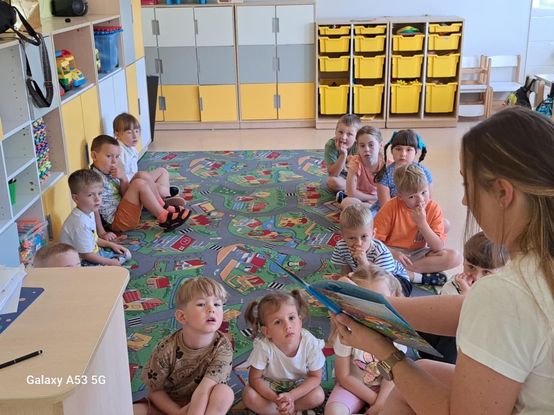 Podczas spotkania przeczytałam dzieciom książeczkę pt. „Smerfomaszynka pogodynka”, która w zabawny sposób opowiadała o przygodach Smerfów związanych z pogodą. Dzieci z zainteresowaniem słuchały, odpowiadały na pytania i opowiadały o swoich wakacyjnych planach. Na zakończenie spotkania wręczyłam wszystkim uczestnikom naklejki z uśmiechniętymi słoneczkami, życząc im pięknych, pełnych słońca i radości wakacji. Mam nadzieję, że książkowe przygody Smerfów zainspirują dzieci do sięgania po kolejne ciekawe lektury, także w czasie letniego wypoczynku.