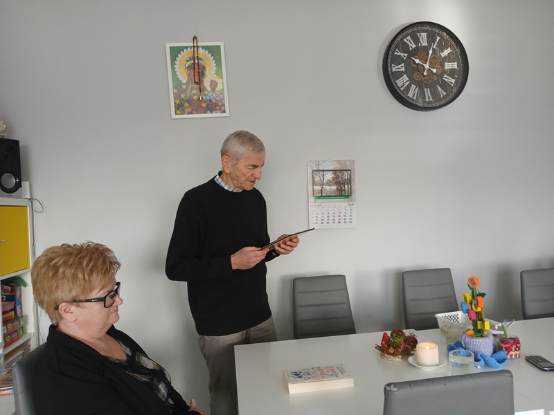 Z okazji Światowego Dnia Seniora dyrektor biblioteki Maria Marciniak i poeta Piotr Fałczyński spotkali się z seniorami Dziennego Domu Senior + w Latowicach. Był czas na życzenia, rozmowy i oczywiście na książkę.