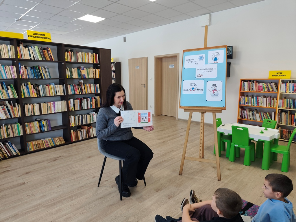 W czasie ferii w bibliotece w Strzyżewie odbyły się zajęcia z cyklu „Zimowe czytanie na bibliotecznym dywanie”.