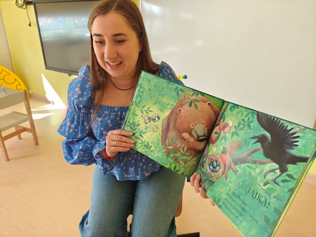 Zgodnie z biblioteczną tradycją w okresie świątecznym odwiedziłam przedszkole w Ołoboku, gdzie odbyło się wielkanocne spotkanie czytelnicze. Dzieci wysłuchały książki „Pan Miś szuka jajek” autorstwa Karmy Wilson i Jane Chapman oraz opowieści Urszuli Kozłowskiej „O wiośnie, kurczętach i wielkanocnych świętach”. Przedszkolaki z dużym zainteresowaniem uczestniczyły w zajęciach, a dodatkową niespodzianką były drobne słodkości od wielkanocnego zajączka. Spotkanie zakończyliśmy, składając sobie serdeczne życzenia wesołych Świąt Wielkanocnych.