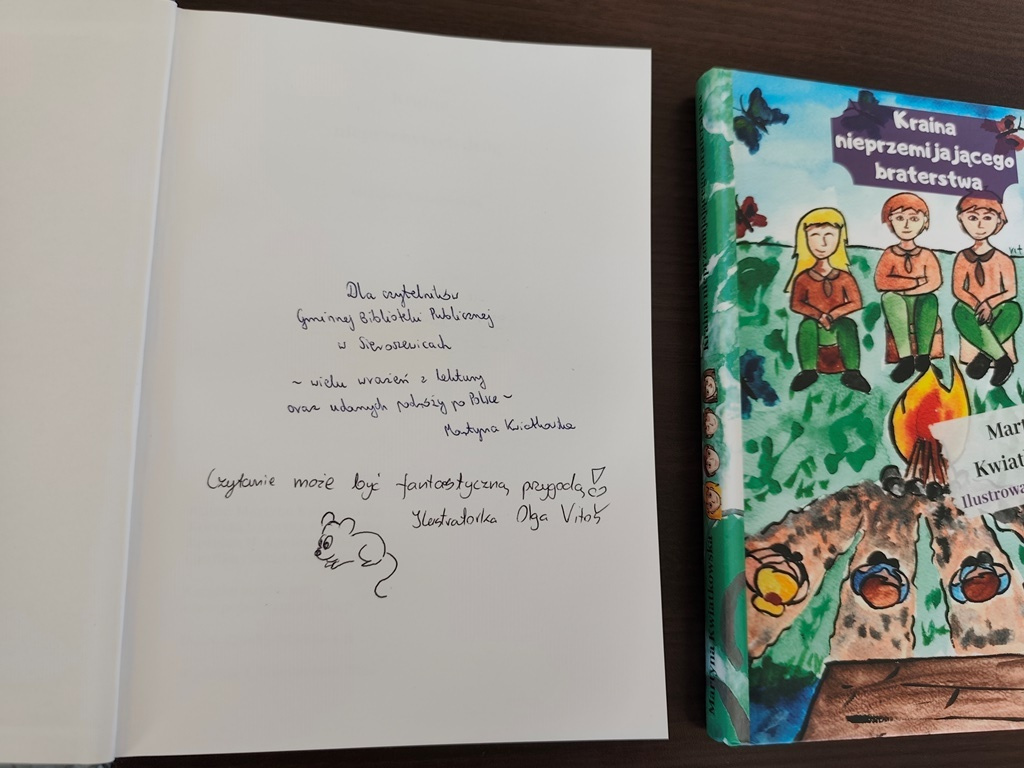 Miło nam poinformować, że Gminna Biblioteka Publiczna w Sieroszewicach zajęła drugie w miejsce w konkursie dla bibliotek z całej Polski zorganizowanym przez autorkę książek Martynę Kwiatkowską. Dzięki temu do naszej biblioteki trafiły wyjątkowe egzemplarze książek z autografem autorki: „Kraina nieprzebytych dróg” i „Kraina nieprzemijającego bohaterstwa”. To piękne ilustrowane historie pełne przygód, przyjaźni i wartości bliskich harcerstwu – nieprzypadkowo, bo autorka jest harcerką od ponad 20 lat. Szczególnie zapraszamy więc harcerzy, zuchy i wszystkich młodych czytelników, którzy lubią historie pełne przygód i ważnych wartości. Dziękujemy naszym wspaniałym czytelnikom i sympatykom biblioteki za każde polubienie i wsparcie w konkursie. Już wkrótce książki będzie można wypożyczyć w naszej bibliotece w filii w Strzyżewie. Zapraszamy do odwiedzin!