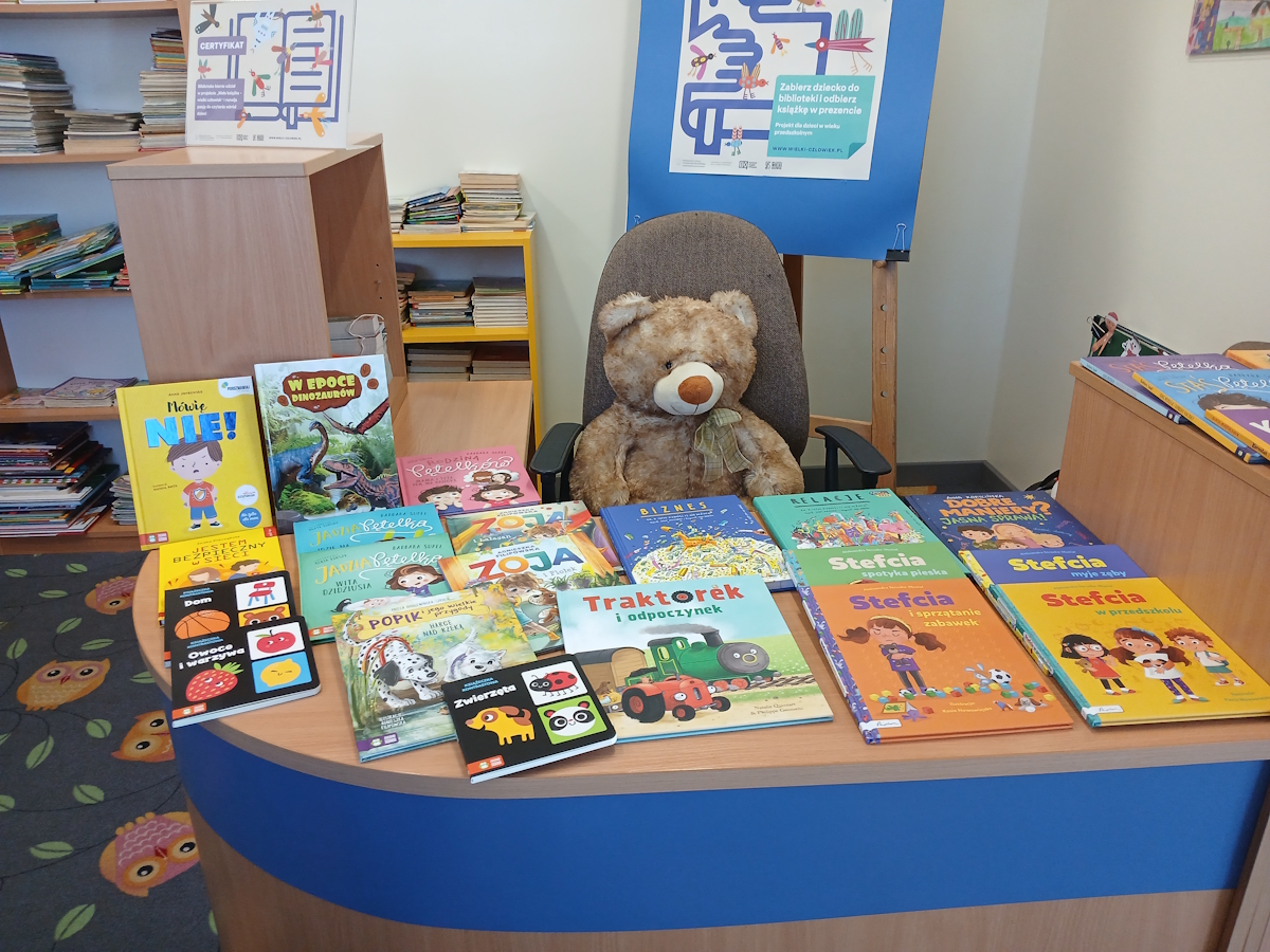 Ze znanych serii dyrektor biblioteki Maria Marciniak poleca najmłodszym czytelnikom nowe przygody uwielbianej Jadzi Pętelki: „Jadzia Pętelka idzie na basen” i „Jadzia Pętelka wita dzidziusia” oraz Stefci: „Stefcia w przedszkolu”, „Stefcia spotyka pieska”, „Stefcia myje zęby”, „Stefcia i sprzątanie zabawek”. Zakupiono również książeczkę o nowych przygodach pieska Popika oraz uroczego, czerwonego Traktorka. Na uwagę zasługują też kolejne pozycje o Zoji: „Zoja i Fiołek” oraz „Zoja i bałagan”, jak również książeczki kontrastowe stworzone z myślą o dzieciach od szóstego miesiąca życia. Miłośnikom książek popularno-naukowych polecamy kolejne pozycje z serii „To, o czym dorośli ci nie mówią” – „Relacje” i „Biznes” oraz książki „Mówię NIE!” Anny Jankowskiej i „Jestem bezpieczny w sieci” Iwony Prószyńskiej. Zachęcamy milusińskich do odwiedzania biblioteki i wypożyczania książek.